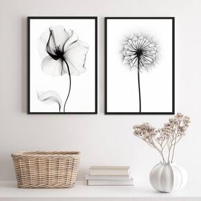 Especificações técnicas: - Kit com 2 quadros minimalistas modernos - Fotos de flores - Tamanho de cada peça: 33x24cm A4 - Material do papel: papel fotográfico brilhante de altíssima resolução - Moldura em madeira preta - Acompanha vidro para proteção da imagem - Pendurador incluso - Embalagem segura com plástico bolha de camada dupla - Garantia de 3 meses