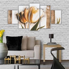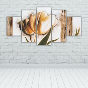 Quadros Mosaico Mdf Floral Flores Tulipas Em Sépia 115X60Cm