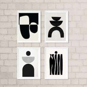 Kit 4 quadros para sala minimalistas abstratos preto 33x24cm. O Kit 4 Quadros Para Sala Minimalistas Abstratos Preto 33X24Cm é perfeito para decorar diversos ambientes, como quarto, sala, cozinha, escritório, área gourmet e muito mais. Chega de paredes vazias! Cada peça possui medidas de 33x24cm A4 , ideal para dar um toque especial à sua decoração.