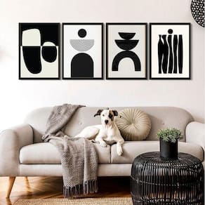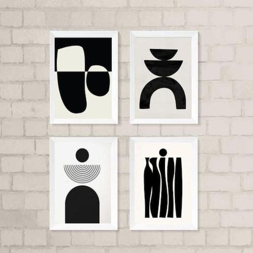 Kit 4 Quadros Para Sala Minimalistas Abstratos Preto 33X24Cm