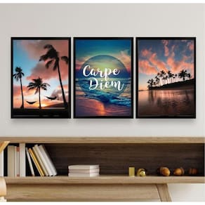 Este Kit com 3 Quadros Praia Por do Sol Carpe Diem é perfeito para decorar diversos ambientes, como quarto, sala, cozinha, escritório e até mesmo área gourmet. Chega de paredes vazias, esses quadros vão trazer mais vida e personalidade aos seus espaços.