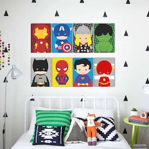 Conjunto composto de 8 peças 30x40cm cada 30x40cm cada Descrição técnica: Tela tipo painel e não precisa moldura, pois seu bastidor já é em madeira pinus de reflorestamento. Durável Nosso tecido não vai rasgar ou amassar. A tela é extremamente durável em comparação com a impressão em papel. Vibrante As cores são vibrantes e as texturas na arte da tela se destacam e contribuem para uma peça visualmente mais ousada. Luz A tela em tecido permite que você se concentre na estampa da imagem escolhida, e não no brilho quando há plastificação ou vidro que reflete toda luz e acaba deixando o quadro muito artificial. Leve Nunca irá danificar suas paredes com estruturas pesadas de madeira, pois nosso pinus de reflorestamento é muito leve em conjunto com o tecido. Custo temos o melhor custo benefício do mercado, pois não acumulamos acabamentos que oneram mão de obra e matérias primas que agridem o meio ambiente ao serem produzidas. Quadros em tecido, acabamento simples e perfeito da Quadros Mais. Relevo ou espessura das telas de 2,5cm Impresso em tecido sintético com textura de telas de pintura e superfície semibrilho. Tecido esticado em chassi de madeira pinus com madeira tratada de reflorestamento. Produzido em 24 horas Pronto para Pendurar na Parede Um produto ÚNICO e EXCLUSIVO Impressão em Altíssima Resolução Indicado para: Indicado para pessoas que gostam de decorar, colorir e personalizar seus ambientes com quadros. Cheio de personalidade e visual único proporcionado pela impressão em tecido com temas variados e dos personalizados. Os quadros em telas, além de modernos são muito práticos, pois já estão prontos para pendurar. Dicas para uso: Em paredes você pode fixar com pregos de aço, parafusos e bucha, fita dupla face ou cola quente. Limpeza com pano úmido ou seco, não usar derivados de álcool.