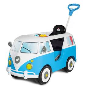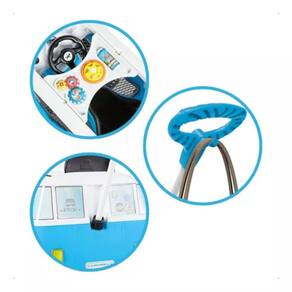 Quariciclo infantil a pedal Azul Kombi Calesita com cinto de segurança e empurrador