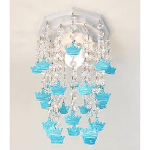 Quartinho de bebê simples lustre infantil luminária menino Design moderno, ideal para decoração de quarto de crianças, bebê, ilumina muito bem e realça o ambiente. Lindo lustre para o quarto do seu príncipe - base plafon octogonal de 17 cm em acrílico na cor branca. - castanhas de acrílico transparente. - coroas de acrílico na cor azul bebê. - altura do lustre 25 cm. - voltagem: bivolt 127v 220v - lustre enviado montado pronto para instalação. Lâmpada não inclusa. Base 17 cm x 25 cm altura atenção mamãe grande por tempo limitado Marca: Não Informado