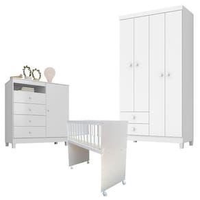 Quarto Bebê 4 Portas Ternura Baby e Mini Berço Moisés Alegria com Colchão Branco Flex - Incorplac