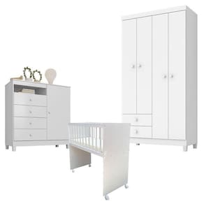 Quarto Bebê 4 Portas Ternura Baby e Mini Berço Moisés Alegria com Colchão Branco - Incorplac
