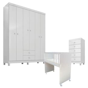 Esta procurando móveis para o quartinho do seu bebê? Aqui você encontra qualidade com bom preço! Apresentamos esse lindo conjunto composto pelo Mini Berço Moisés Alegria e Cômoda Gaveteiro e Guarda roupa Ternura desenvolvidos com materiais de excelente qualidade e procedência em MDP. O berço é portátil Ideal para a mamãe ficar pertinho do seu bebê na rotina do dia a dia. Para facilitar a locomoção possui rodízios com trava garantindo mais . Já acompanha o colchão. A cômoda e o guarda roupa possuí amplo espaço interno, repartições ideal para acomodar roupinha sapatinhos, e outros itens. Conforto e que seu bebê merece aproveite e garanta já o seu!