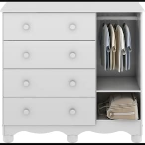 01 Cômoda TedyCom 4 gavetas práticas, portas em PETG cristal e puxadores em ABS.