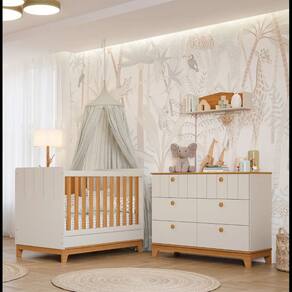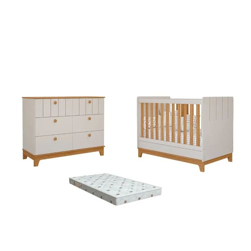 Quarto Bebe Berço e Cômoda MDF Dorabelly Bis com Colchão - Off White