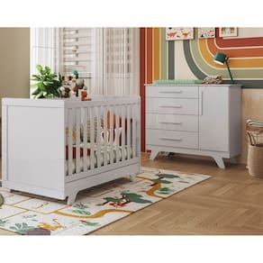 O Berço Retrô é um produto padrão americano, fabricado 100% em MDF e possui pintura atóxica. Seu estrado possui altura regulável e é fabricado em MDF e madeira/laminado de madeira. As grades são fabricadas em chapas de 25 e 12 mm. Seus pés são usinados em uma peça única de MDF 25 mm. O quadro das cabeceiras é também em chapa de 25 mm. Possui bordas arredondadas e laqueadas, proporcionando maior segurança e uma sensação agradável ao toque. Acompanha suporte de cortinado e possui a opção de transformação em minicama.