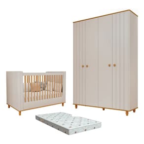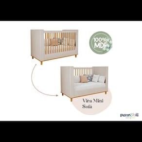 Berço cupcake 100% MDF com 2 grades fixas com Palitos de Madeira, Pés torneados de madeira, Cantos arredondados, Acabamento em pintura UV.