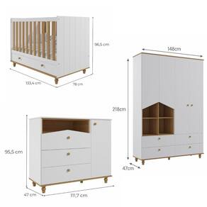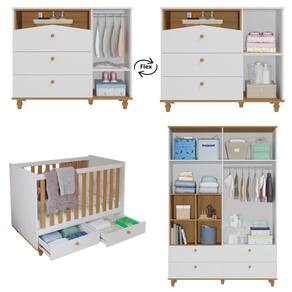 O Quarto Bebê Berço,Cômoda e Guarda Roupa Casinha Permobili é um conjunto lúdicos e funcionais, ideal para organizar e decorar com charme e elegância. Inclui roupeiro, cômoda e berço, todos fabricados em MDF 100, com design ecológico, seguro e durável. Destacam-se pelos detalhes como nichos decorativos, puxadores e pés torneados em madeira maciça, gavetas com corrediças telescópicas para deslizamento suave e amplo espaço interno. Acabamento em laca e tinta atóxica oferece segurança e sofisticação. Certificados pelo INMETRO BRE-637/2018-4, garantem resistência e estabilidade, atendendo às normas de segurança ABNT.