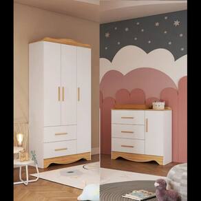 O Armário Clara 3 Portas Lisas Plus é um produto 100% MDF e possui pintura atóxica. Sua estrutura é fabricada em chapa de 12 mm, sendo seu tampo superior em chapa de 15 mm. Possui puxadores em MDF revestido com papel melamínico, cabideiro metálico e gavetas com corrediças telescópicas. Acompanha dois modelos de rodapés que podem ser definidos no momento da montagem.