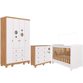 Conforto, aconchego, praticidade e segurança são itens fundamentais na escolha dos móveis do quarto para o seu Bebê e todos esses requisitos, você encontra no Quarto de Bebê Completo Berço Americano Ben 3 Em 1 Guarda Roupa 4 Portas e Cômoda Bolinha 4 Gavetas Móveis Peroba.