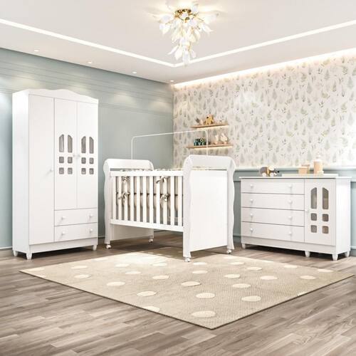 O Quarto Bebê Retrô Completo Carolina Baby une design elegante, funcionalidade e segurança, criando um ambiente acolhedor e elegante para o seu bebê. Produzido em 100% MDF e com pintura UV não tóxica, é ideal para quem busca qualidade, durabilidade e ótimo aproveitamento de espaço.