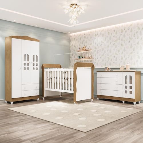 O Quarto Bebê Completo Carolina Baby une design elegante, funcionalidade e segurança, criando um ambiente acolhedor e elegante para o seu bebê. Produzido em 100% MDF e com pintura UV não tóxica, é ideal para quem busca qualidade, durabilidade e ótimo aproveitamento de espaço.