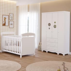 O Quarto de Bebê Completo com Berço Americano Marquesa e Guarda Roupa Bolinha da Móveis Peroba são ideais para você que busca uma linda decoração, sem esquecer da praticidade, segurança, aconchego do seu Bebê.