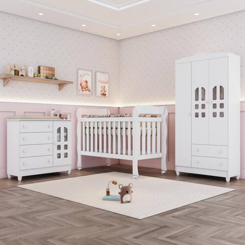 O Quarto Bebê Completo Carolina Baby foi desenvolvido para oferecer segurança, funcionalidade e um visual retrô elegante, criando um ambiente acolhedor e organizado para o seu bebê. Fabricado em 100% MDF e com pintura UV não tóxica, é ideal para quem busca qualidade e durabilidade.