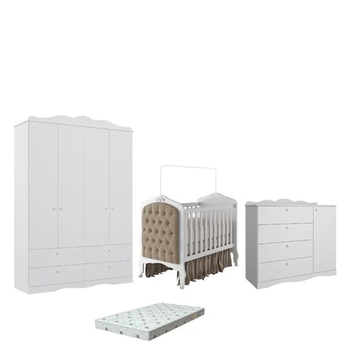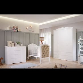 Este HARMONIA é um produto que vai levar mais elegância e sofisticação para o quarto do seu bebê.Produzido com MDF, madeira resistente que garante estabilidade e segurança, ele é a melhor opção para deixar que seu anjinho descanse.O melhor de tudo é que ele acompanha o crescimento do seu filhote porque também vira um Berço Cama.O detalhe do Capitonê é uma maravilha a parte, você e quem mais dividir o ambiente do seu Bebê ficarão deslumbrados.Acompanha 04 rodizios e varal mosquiteiro Registro certificado Inemtro 006885-2018 Acompanha o Colchão LARG 70cm X COMP 130xm X ALT 10cm; Medidas do móvel montadoALT 118cm X COMP 135cm X PROF 85cm ; 01 cômoda Encanto A Cômoda Encanto, bebê infantil, possui o tampo com bordas laqueadas, cabideiro metálico, puxadores em ABS, corrediças telescópicas,A Cômoda sapateira, é um produto com ótimo custo benefício. Fabricado em100% MDF que é ideal para quem procura qualidade, design e funcionalidade em um único produto.Com 4 gavetas e 1 sapateira, possui excelente espaço interno. A cômoda Encanto foi desenvolvida pensando em você e no seu bebê. Medidas do móvel montadoALT 108cm X LARG 119cm PROF 48cm 01 Guarda roupa encanto Quer manter o quarto do seu baby organizado, mantendo o estilo de conforto e delicado do quarto? Então você achou o que procurava.O Roupeiro Encanto é um produto com ótimo custo benefício. O produto é 100% MDF que é ideal para quem procura qualidade, design e funcionalidade em um único produto. Com 4 gavetas e 4 portas, possui excelente espaço interno. Medidas do móvel montadoALT 222cm X LARG 158cm X PROF 48cm Atenção: Por favor, confira as dimensões do produto e certifique-se de que estão adequadas aos elevadores, portas e corredores do local de entrega, pois não fazemos a montagem, desmontagem do produto e/ou portas e janelas, transporte pela escada ou içamento pelo lado de fora do prédio.Montagem e possíveis trocas de peças responsabilidade do comprador;Garantia 3 meses contra defeito de fabricacao; Fabricante Permóbili ;