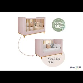 Berço cupcake 100% MDF com 2 grades fixas com Palitos de Madeira, Pés torneados de madeira, Cantos arredondados, Acabamento em pintura UV.