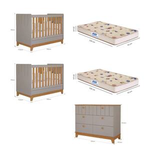 Quarto Bebê Gêmeos Berço Mini Cama Cômoda 6 gavetas Liza e 2 Colchões Gazin Permobili - Cinza