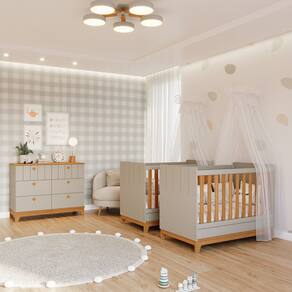 Quarto Bebê Gêmeos Berço Mini Cama Cômoda 6 gavetas Liza e 2 Colchões Gazin Permobili