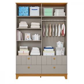 Quarto Bebê Gêmeos com 2 Berços Mini Cama e Guarda-Roupa 4 portas Liza