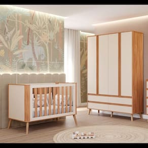Fabricado em MDF, 04 portas , gavetas com corrediças telescópicas, cantos arrendodados , pés em madeira,pintura atóxica, puxadores cavas, acabamento interno linho, sistema anti tombamento;