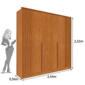 1x Guarda Roupa 6 Portas Ripado 244cm Nova York Flex Cinamomo Largura: 244 cm Altura: 232 cm Peso: 197,2 kg Profundidade: 56 cm Necessita Montagem: Sim