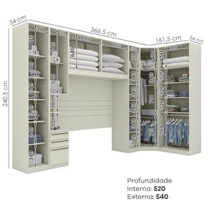Altura: 240,5 cm x Largura: 40 cm x Profundidade: 54 cm