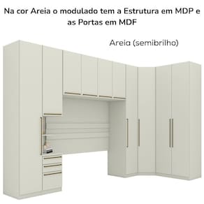 Modulado Seletto é completo e foi desenvolvido para atender as mais diversas necessidades de uso e espaço, várias possibilidades de combinações casal ou solteiro. Quarto de Casal Modulado 10 porta e 3 gavetas. Estrutura em MDP de 15mm e Portas em MDF/BP de 15mm (fundo com 3mm), dobradiças metálicas 35mm com amortecimento, 3 gavetas com corrediças telescópicas, 19 prateleiras suportando 8 kg cada, puxadores de alça, cabideiro e calceiro em alumínio. Todo o conjunto com acabamento em pintura UV texturizado (fosco ou semibrilho), opção de montagem (Direita/ Esquerda) na mesa de cabeceira e guarda roupa de 1 porta de 40 cm, ponte com detalhe de aplique ripado em alto relevo, módulo guarda roupa de 2 portas FLEX, com dupla opção de montagem na interna. Este móvel chegará na sua casa separado em 15 volumes.