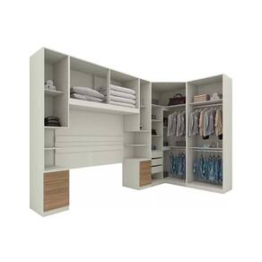 Modulado de Quarto Closet de Canto Oblíquo Seletto MC06 c/ 2 Portas e 3 Gavetas c/ Espelho Areia/Jequitibá - Henn