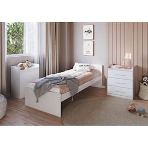 O Berço Beni é um produto padrão americano, fabricado 100% em MDF e possui pintura atóxica. Possui trocador, gaveteiro e baú integrados. O estrado possui altura regulável e é fabricado em MDF e madeira/laminado de madeira. As grades são fabricadas em chapas de 25 e 12 mm, as molduras são em chapa de 25 mm, as cabeceiras em chapa de 15 mm e o gaveteiro e baú possuem estrutura em 12 mm. O gavetiro possui corrediças telescópicas. Possui bordas arredondadas e laqueadas, proporcionando maior segurança e uma sensação agradável ao toque. Acompanha suporte de cortinado e é um produto flex 4 em 1, sendo berço, trocador, gaveteiro e baú, podendo ser tranformado em cama solteiro. A cama solteiro possui padrão de colchão de 188 x 78 cm. Aceita adaptação de cama auxiliar, que é vendida separadamente.