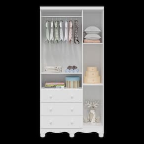 Fabricado em MDF;Cabideiro metálico;Puxadores plásticos;Corrediças metálicas; 03 Portas,