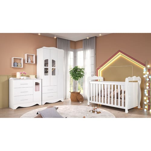 Acompanha suporte de cortinado e possui opção de transformação em minicama e minissofá.
