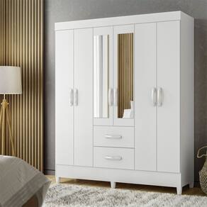 Quarto Completo Casal Guarda Roupa 6 Portas Com Espelho e Cômoda Mobi - Branco