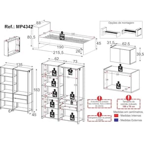 Dimensões do Closet Montado - Altura: 183cm | Largura: 135cm | Profundidade: 45cm