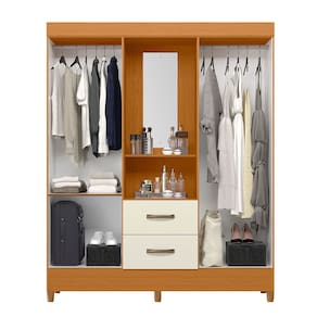 Quarto Completo Guarda Roupa 4 Portas Capela Com Espelho e Cômoda Mobi - Marrom
