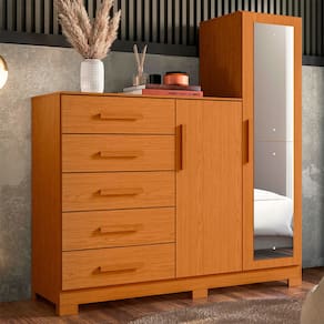Quarto Completo Guarda Roupa 6 Portas Com espelho Vinci e Cômoda Sapateira New Master