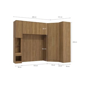 Para quem sempre sonhou com um quarto planejado, o Modulado Adapt da Kappesberg é a escolha certa. Produzido em MDP de 15mm, o que proporciona mais firmeza, robustez e qualidade, o Combo CB1436 é ideal para quem busca otimizar espaço e garantir beleza e funcionalidade no dia a dia. Com 2,30m de altura, 4,87m de largura e 56cm de profundidade, o combo traz soluções funcinais e muito espaço interno, além do guarda-roupa de canto obliquo, que permite composições modernas um aproveitamento perfeito.
