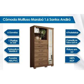 Dimensões(Cm): Cômoda Marabá 1.6 c/ 1 Porta c/ Espelho 6 Gavetas e Pés