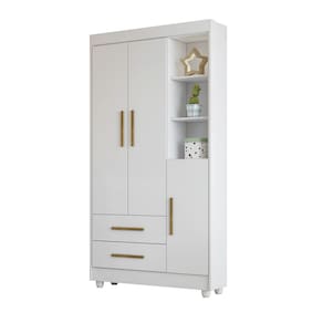 Dormitório completo com Roupeiro com 3 portas e 2 gavetas. Possui 1 cabideiro, 5 prateleiras. Dobradiças metálicas de pressão. Corrediças metálicas. Produto com ótima divisão interna.