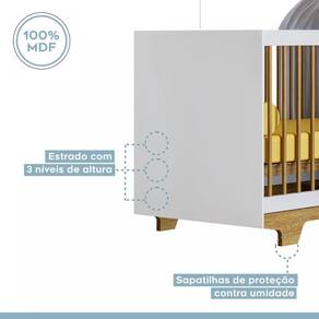 Quarto de Bebê 100% MDF Berço Minicama com Colchão e Cômoda Flocos Branco/Ypê. Quer deixar o quarto do seu bebê mais confortável e atraente? Então você vai se apaixonar por este dormitório Flocos. Composto por móveis selecionados por serem de alta qualidade e resistência, ele é ideal para deixar o quarto irresistível e organizado. Demais, né? Aproveite. Informações Complementares: Berço minicama MDF com grades em madeira, sistema de fixação por buchas, 3 níveis de altura de estrado, sapatilhas de proteção contra umidade. Acompanha Kit para transformação em minicama e suporte mosquiteiro. Cômoda/Fraldário/Trocador com 1 porta e 3 pr Ean: 7908506284029