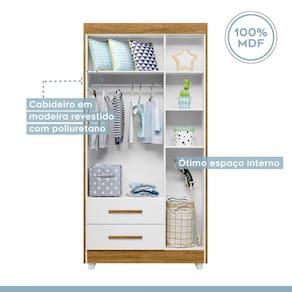 Quarto de Bebê 100% MDF com Berço Minicama, Cômoda e Guarda Roupa 3 Portas Flocos Branco/Ypê. Quer deixar o quarto do seu bebê mais confortável e atraente? Então você vai se apaixonar por este dormitório Flocos. Composto por móveis selecionados por serem de alta qualidade e resistência, ele é ideal para deixar o quarto irresistível e organizado. Demais, né? Aproveite. Informações Complementares: Dormitório completo com Roupeiro com 3 portas e 2 gavetas. Possui 1 cabideiro, 5 prateleiras. Dobradiças metálicas de pressão. Corrediças metálicas. Produto com ótima divisão interna. Possui jogo de pés que permitem passagem de ventilação por baixo do móv Ean: 7908506284104