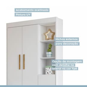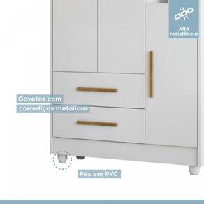 Quarto de Bebê 100% MDF com Berço Minicama, Cômoda e Guarda Roupa 3 Portas Flocos Branco. Quer deixar o quarto do seu bebê mais confortável e atraente? Então você vai se apaixonar por este dormitório Flocos. Composto por móveis selecionados por serem de alta qualidade e resistência, ele é ideal para deixar o quarto irresistível e organizado. Demais, né? Aproveite. Informações Complementares: Dormitório completo com Roupeiro com 3 portas e 2 gavetas. Possui 1 cabideiro, 5 prateleiras. Dobradiças metálicas de pressão. Corrediças metálicas. Produto com ótima divisão interna. Possui jogo de pés que permitem passagem de ventilação por baixo do móv Ean: 7908506284098