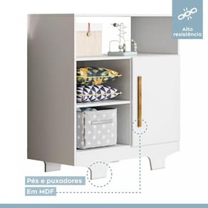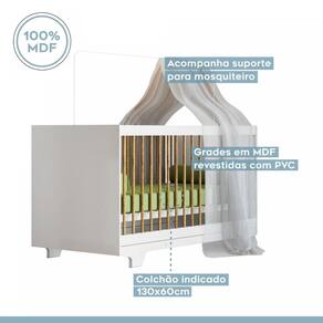 Quarto de Bebê 100% MDF com Berço Minicama e Cômoda Flocos Branco. Quer deixar o quarto do seu bebê mais confortável e atraente? Então você vai se apaixonar por este dormitório Flocos. Composto por móveis selecionados por serem de alta qualidade e resistência, ele é ideal para deixar o quarto irresistível e organizado. Demais, né? Aproveite. Informações Complementares: Berço minicama MDF com grades em madeira, sistema de fixação por buchas, 3 níveis de altura de estrado, sapatilhas de proteção contra umidade. Colchão não fornecido. Acompanha Kit para transformação em minicama e suporte mosquiteiro. Cômoda/Fraldário/Troc Ean: 7908506283985