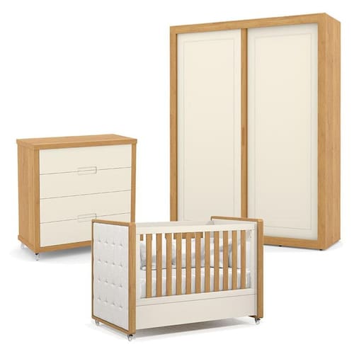 Quarto de Bebe 2 Portas Tutto New com Capitonê New Boucle e Gaveteiro Freijó Off White - Matic