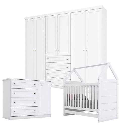 Quarto de Bebê Americano 6 Portas com Berço Montessoriano Branco - Henn