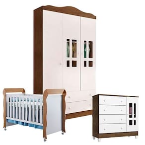 Quarto de Bebê Ariel 3 Portas com Berço Mirelle Branco Acetinado Amadeirado Carolina