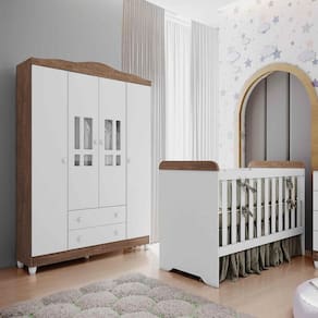 Duas peças fundamentais para você começar a montar o quarto do seu filho. Produzidas em MDP e MDF de alta resistência e durabilidade, elas oferecem toda qualidade e segurança. O berço 3 em 1 serve ainda como mini-cama e mini-sofá, enquanto o guarda-roupa 4 portas com detalhe acrílico vem com cabideiro, prateleiras e gavetas. Disponíveis nas cores Branco Brilho e Branco Fosco com Amadeirado.